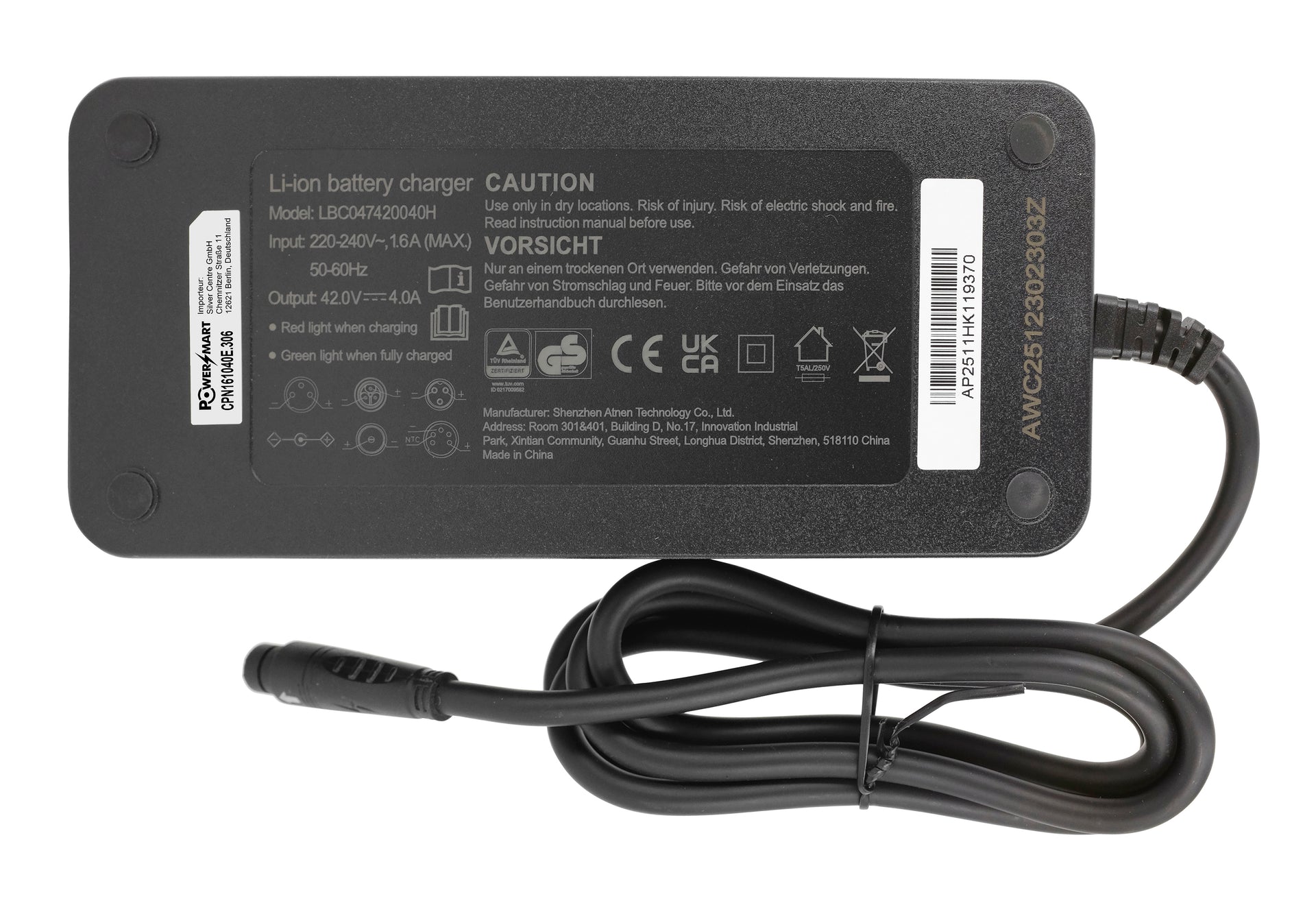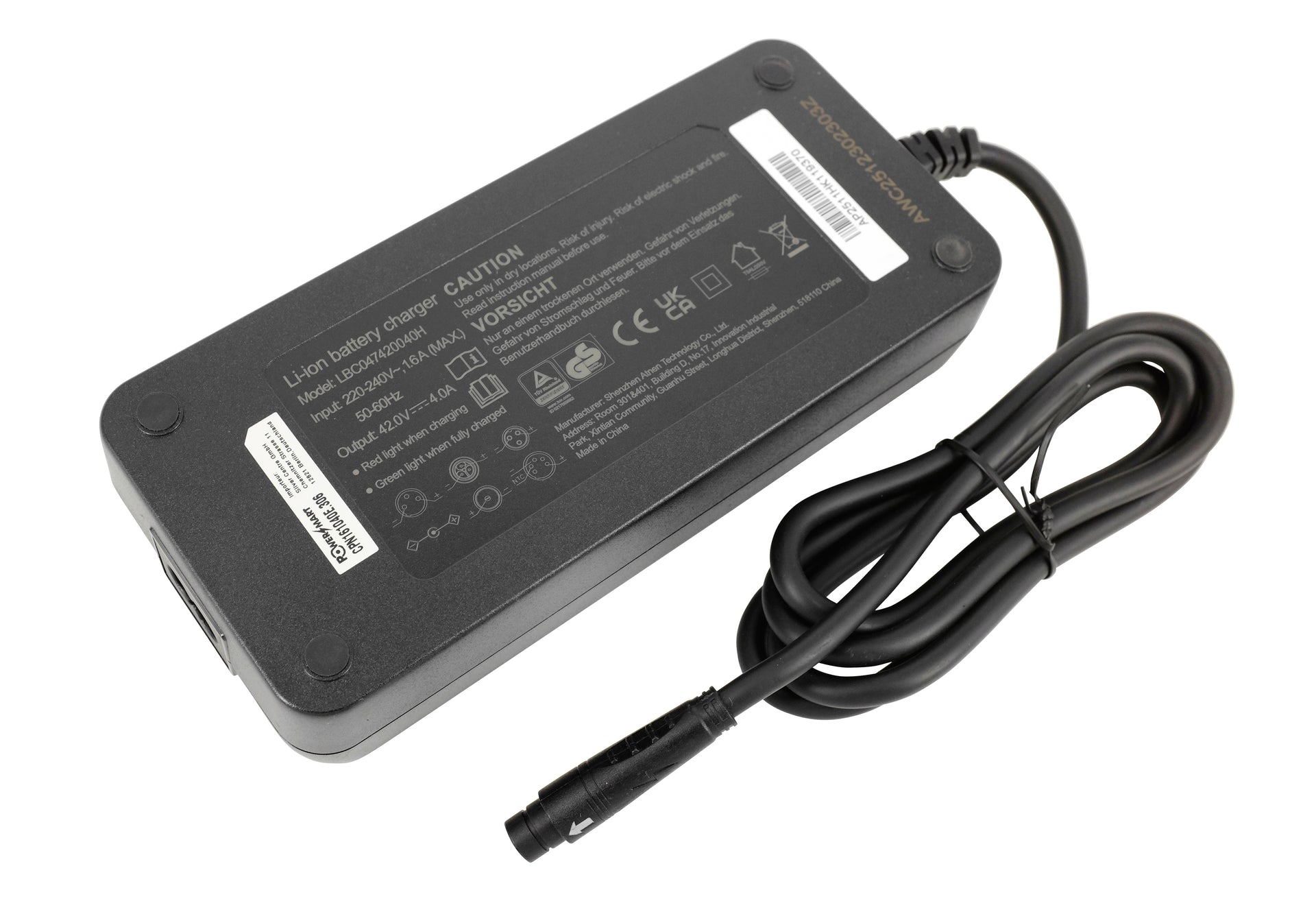 42V 2A IMP 3-Pin Li-Ion-Ladegerät für 36V Hyena BS-A370 Akku und Feu Vert E-Rox Elektrofahrradakku oder Akku mit gleichem Ladeanschluss