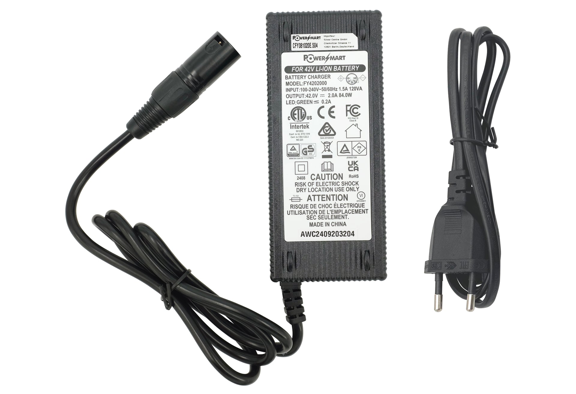 42 V 2 A 5-poliges XLR-E-Bike-Akkuladegerät für: