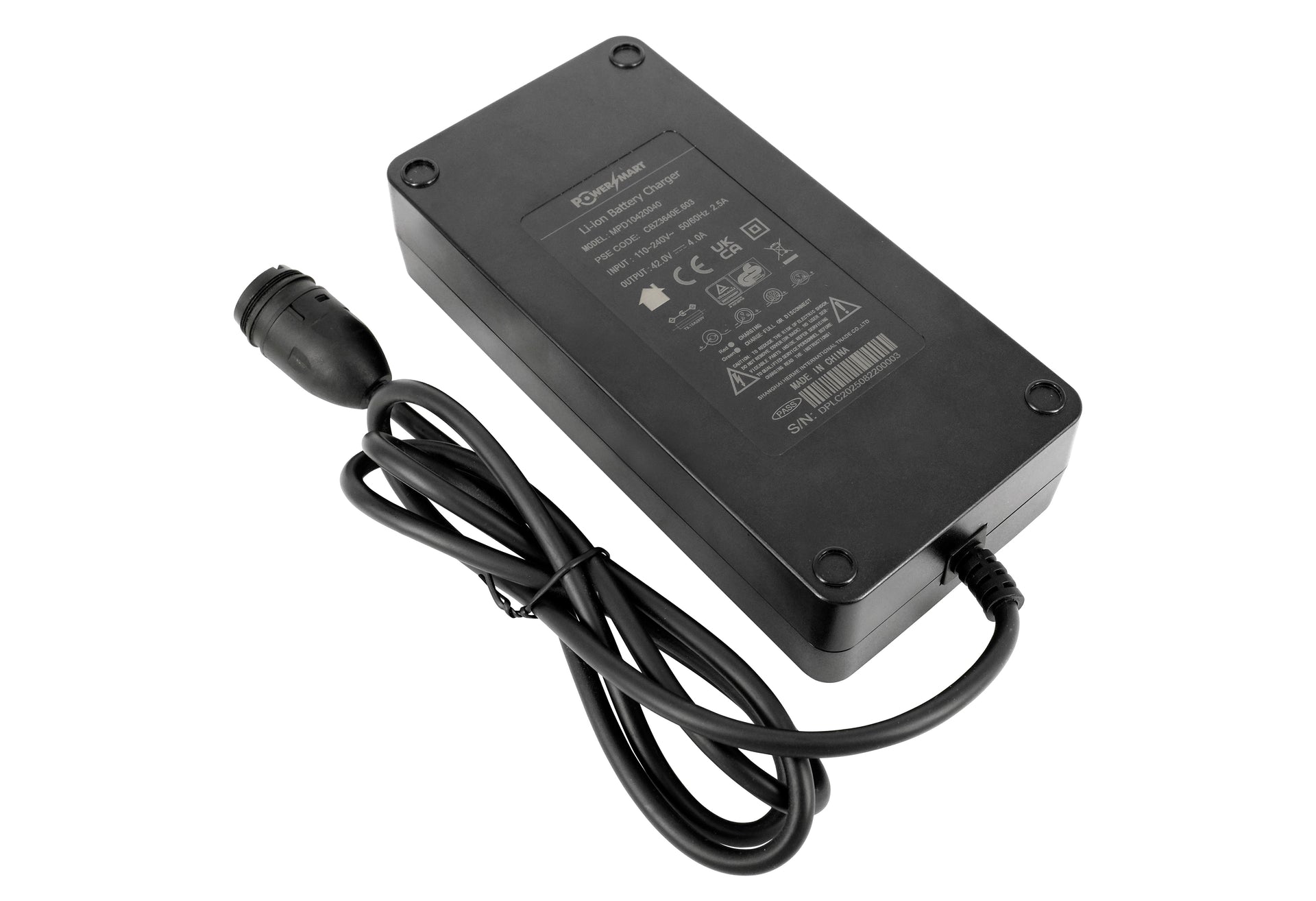 Spannung: 100–240 V (Eingang), 42 V (Ausgang), 4,0 A (Ausgangsstrom)