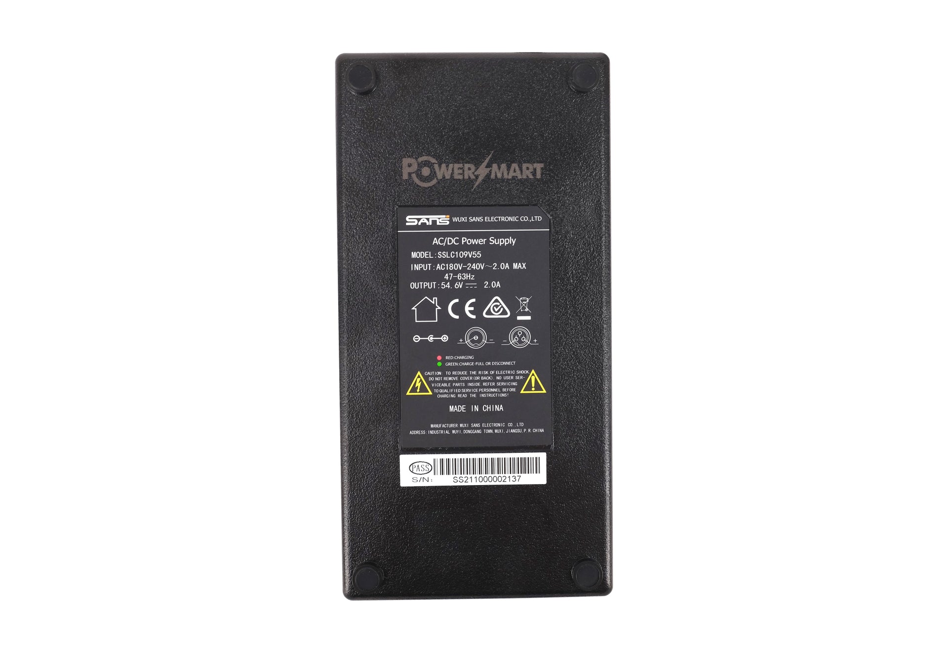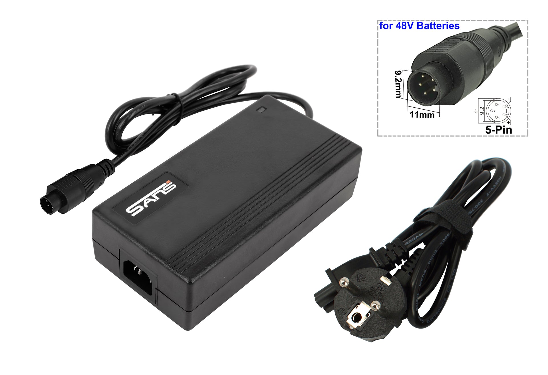Uitgangsspanning: 54,6V – 2A (geschikt voor 48V Li-ion accu)