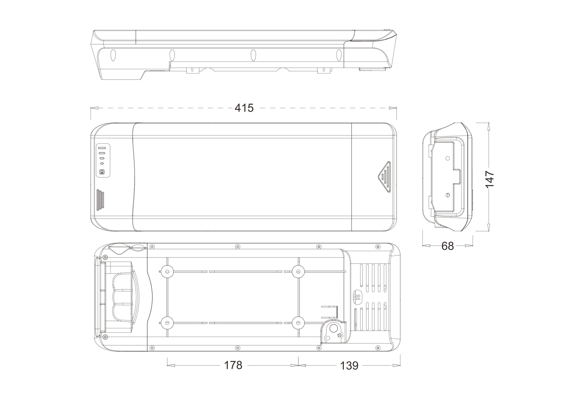 - Abmessungen mit Halter: 415*147*68 mm